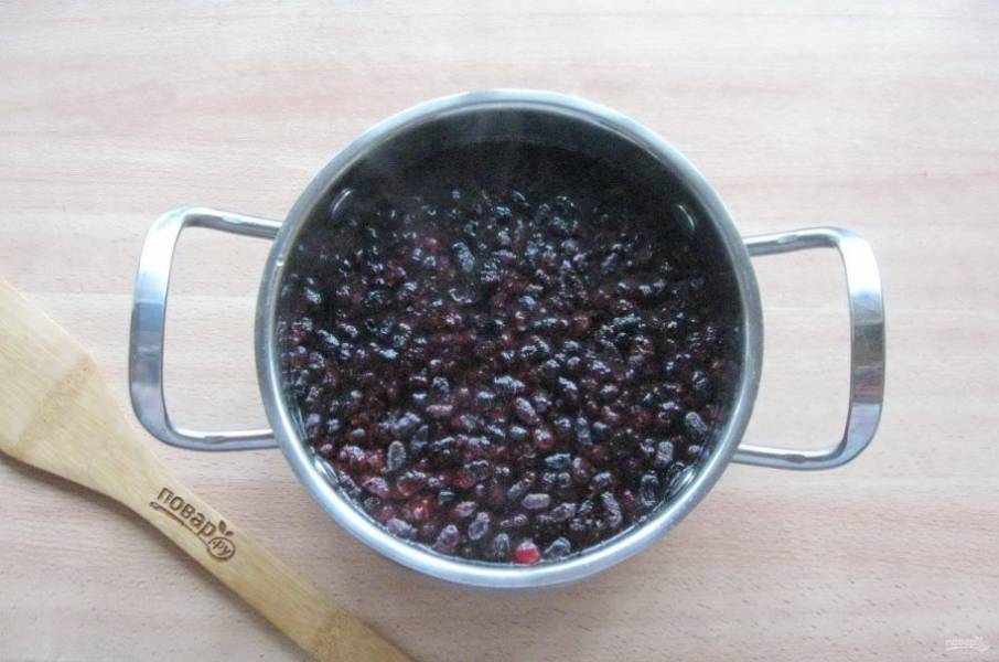 Залейте жимолость водой и поставьте кастрюлю на плиту.