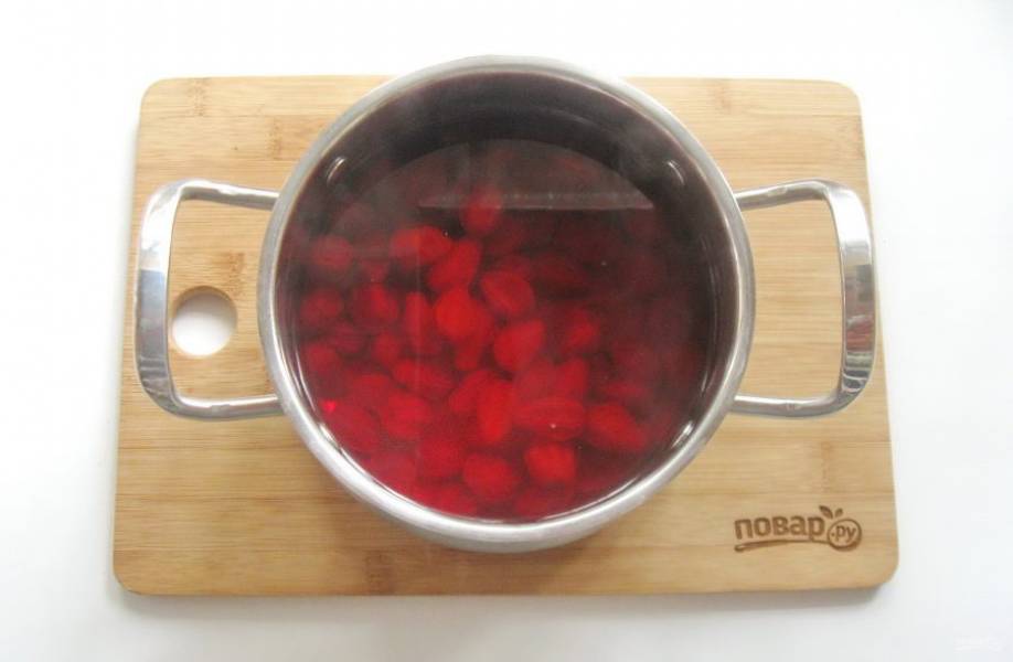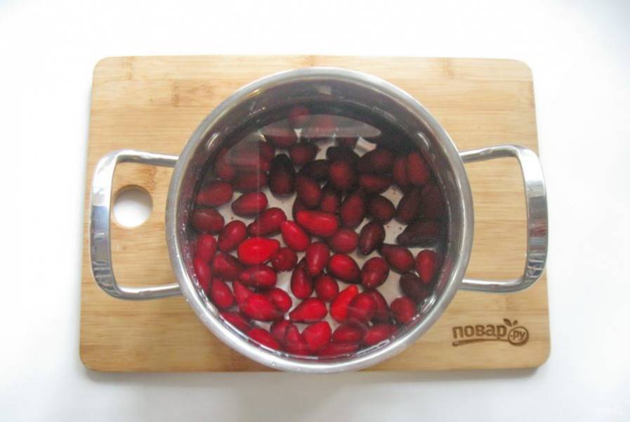 Доведите кизил в воде до кипения и варите 10-15 минут на среднем огне.