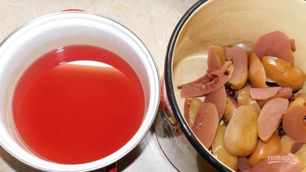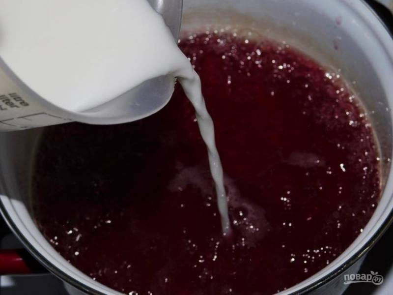 Процеженный отвар доведите до кипения. Добавьте сахар и влейте крахмал. Проварите немного до легкого загустения.