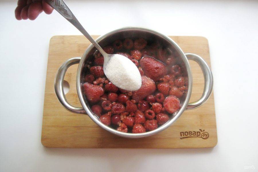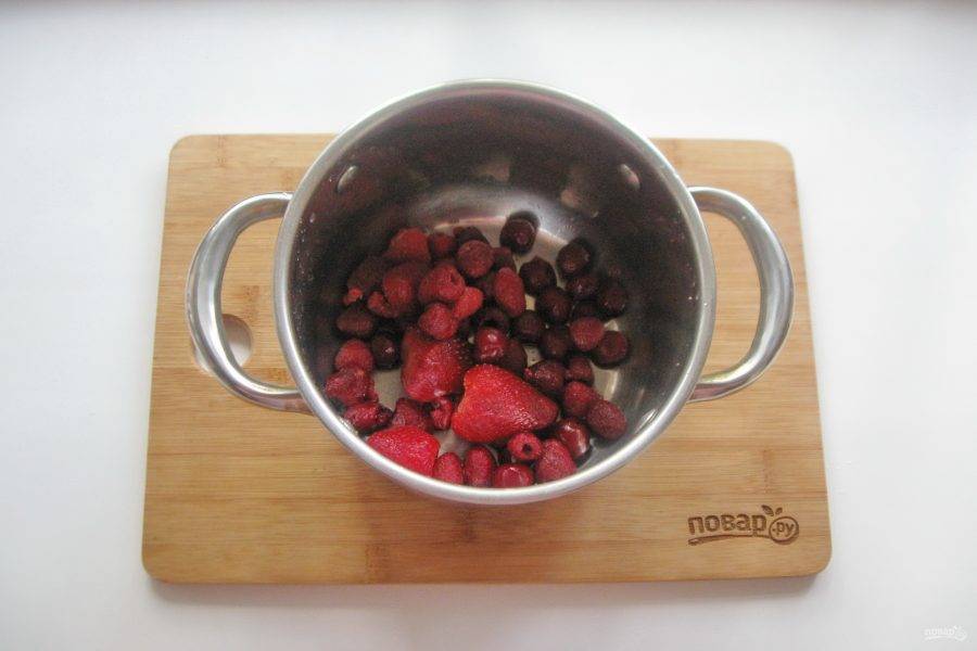 Ягоды помойте и выложите в кастрюлю. Размораживать не надо.