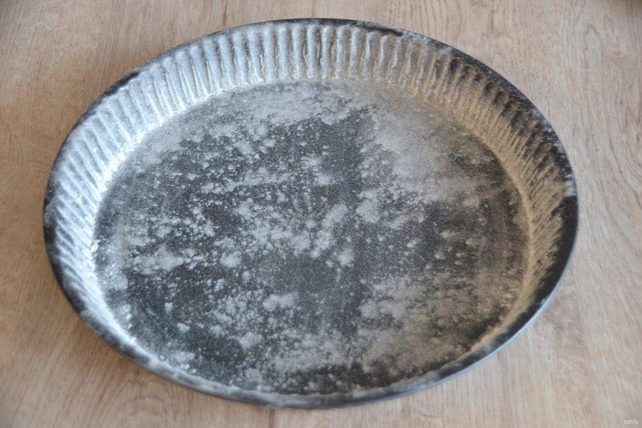Подготовьте форму для выпечки, сделайте "французскую рубашку". Для этого смажьте ее сливочным маслом, присыпьте мукой, излишки муки стряхните.