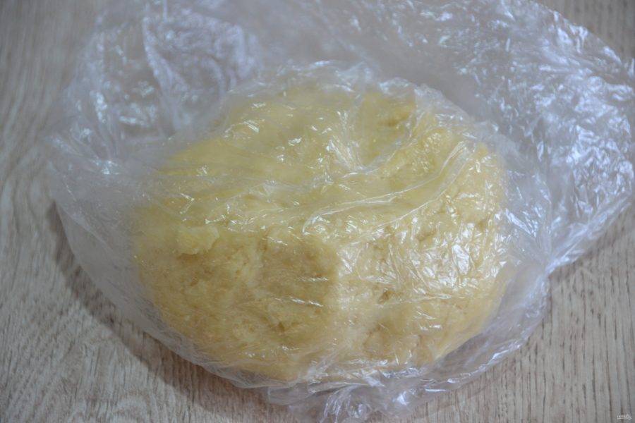 Соберите тесто в колобок, заверните в пленку, уберите в холодильник на 30 минут.