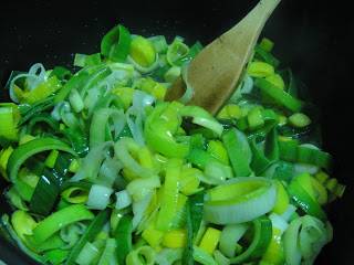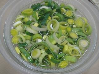 Лук-порей порежьте кольцами и хорошо промойте от песка.
