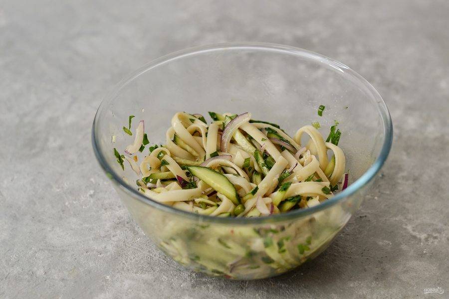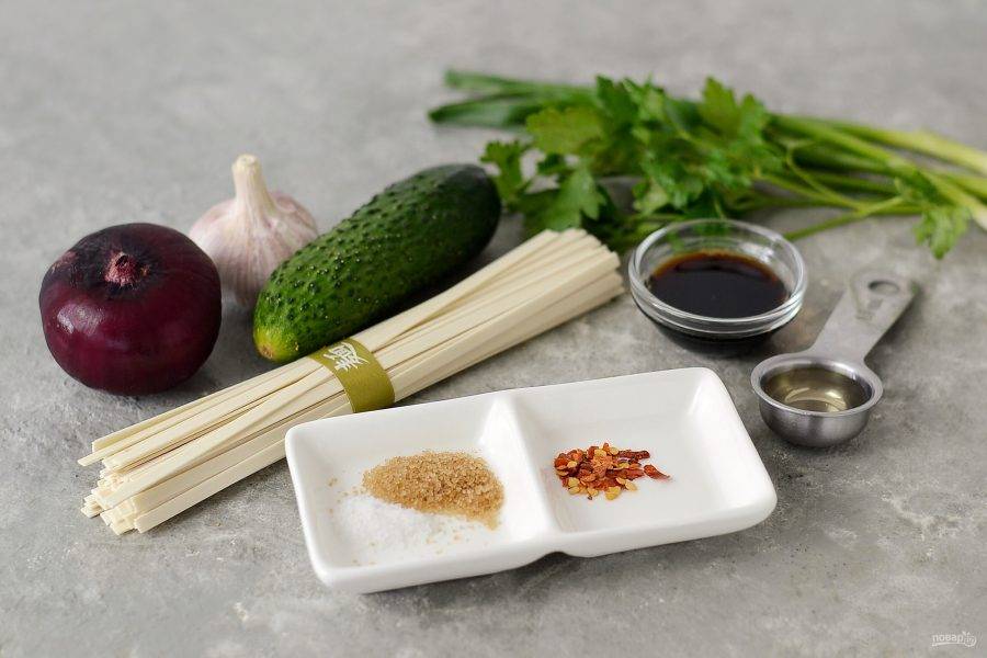 Делюсь рецептом блюда из китайской кухни. Холодная лапша с луком и огурцом, которую можно подать в качестве закуски, салата или основного блюда.