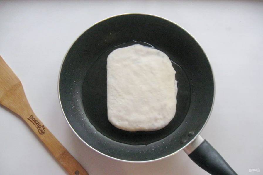 Выложите на горячую сковороду с небольшим количеством масла. Обжарьте до золотистой корочки на среднем огне с одной стороны.