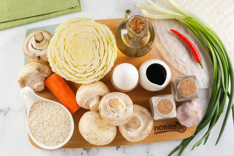 Китайские весенние роллы с рисом и грибами готовы. Приятного аппетита!