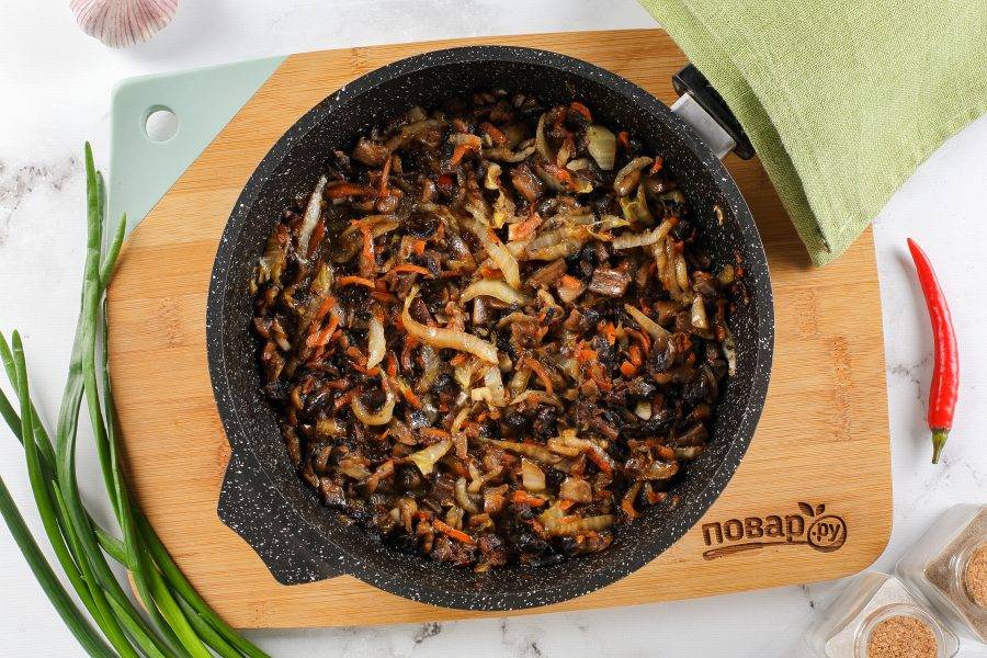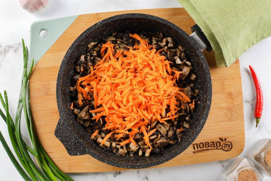 Добавьте тёртую морковь и готовьте около 5 минут.