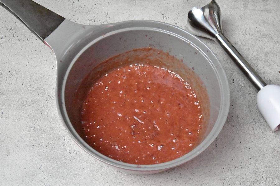 Когда сливы станут мягкими, измельчите их с помощью блендера в однородную смесь. Консистенция соуса по вашему желанию может быть неоднородной. Если желаете гладкую текстуру соуса, можно протереть смесь через сито.