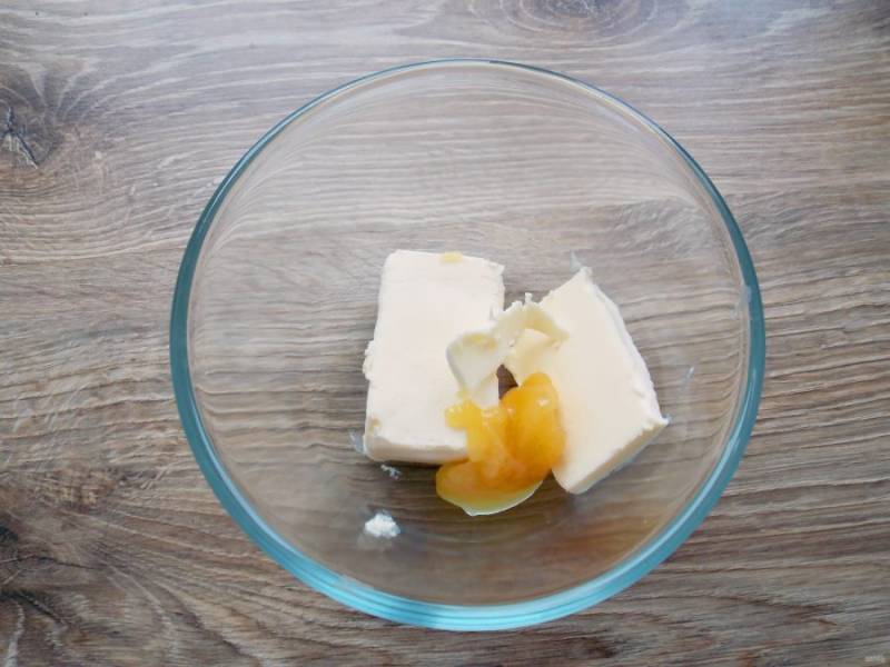 В миску выложите сливочное масло и 1 столовую ложку меда. Растопите любым удобным для вас способом.