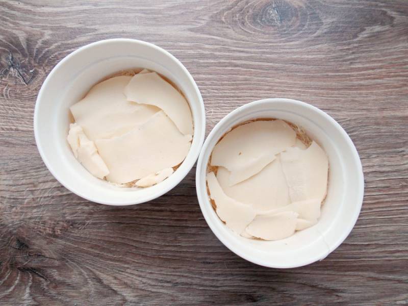 Разложите оставшееся тесто по формочкам и прижмите руками.