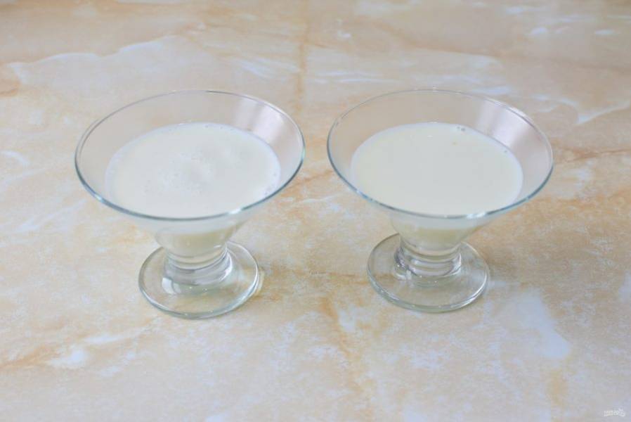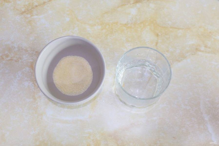 Желатин залейте холодной водой и оставьте постоять на 15-20 минут, чтобы он набух.
