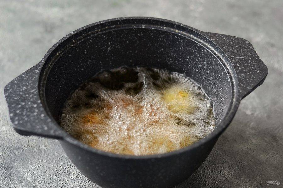 Обжарьте фалафель во фритюре до коричневой корочки.