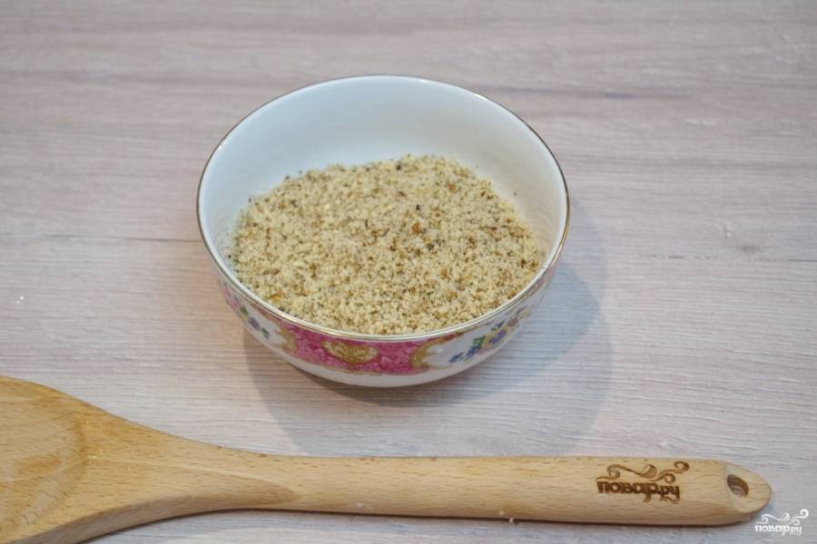 Грецкий орех очистите, поместите в блендер и перебейте в пудру.