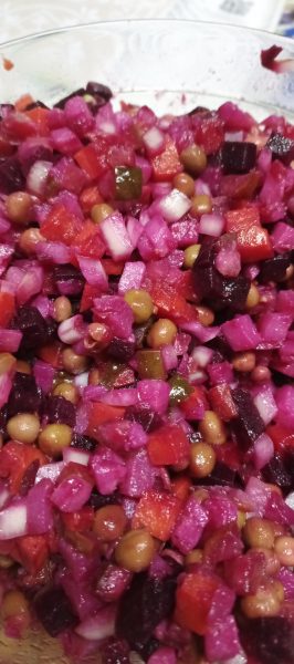 Овощи варила накануне, а сегодня быстренько порезала, вкус получился прям яркий и насыщенный