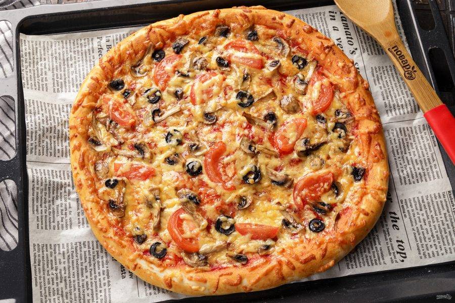 Используя эту основу, можно приготовить любую пиццу на ваш вкус. Удачной вам выпечки!