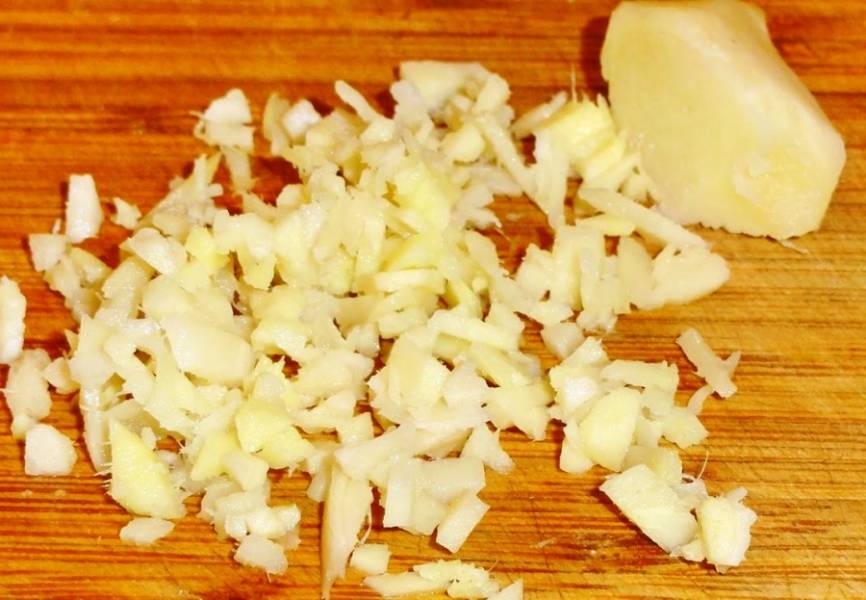 Измельчите имбирь.