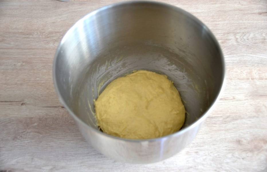 Накройте тесто пищевой пленкой, поставьте в теплое место для подъема на 1,5-2 часа.