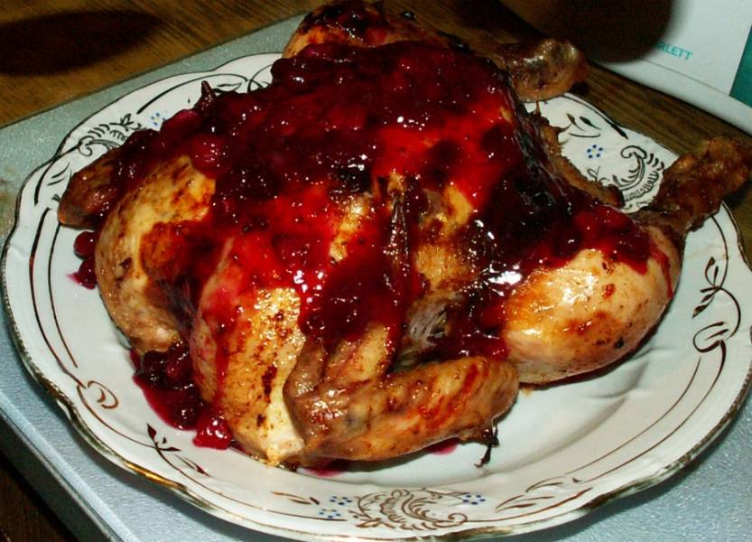 Готово! Полученным соусом поливаем курицу или индюшку! Приятного аппетита!