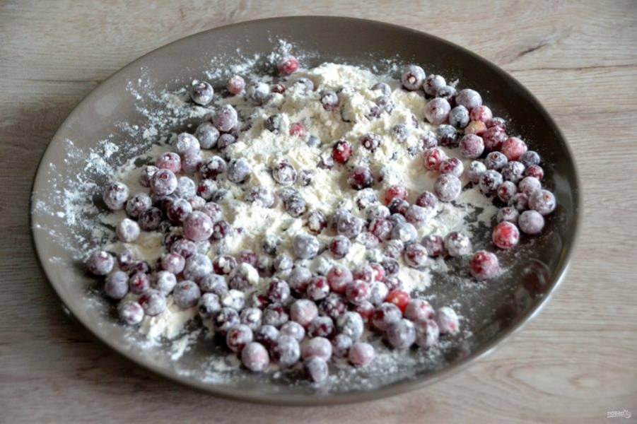 Обваляйте один стакан клюквы в муке, прежде чем вмешать её в тесто.