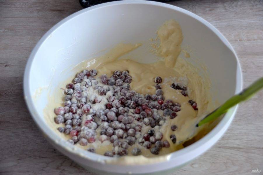 Аккуратно вмешайте клюкву в тесто.