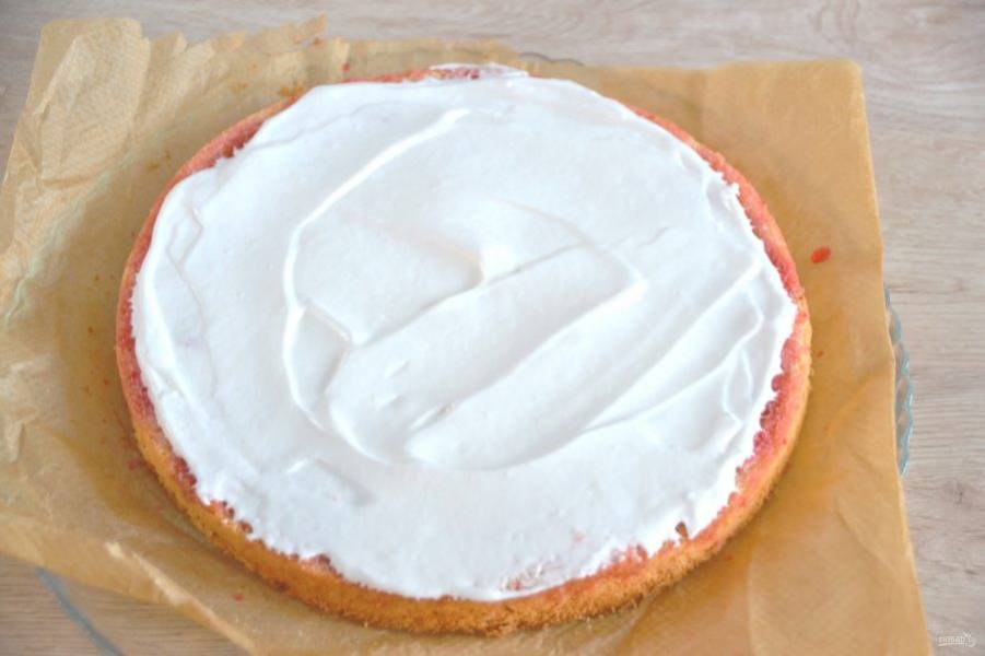 Промажьте коржи белковым кремом.