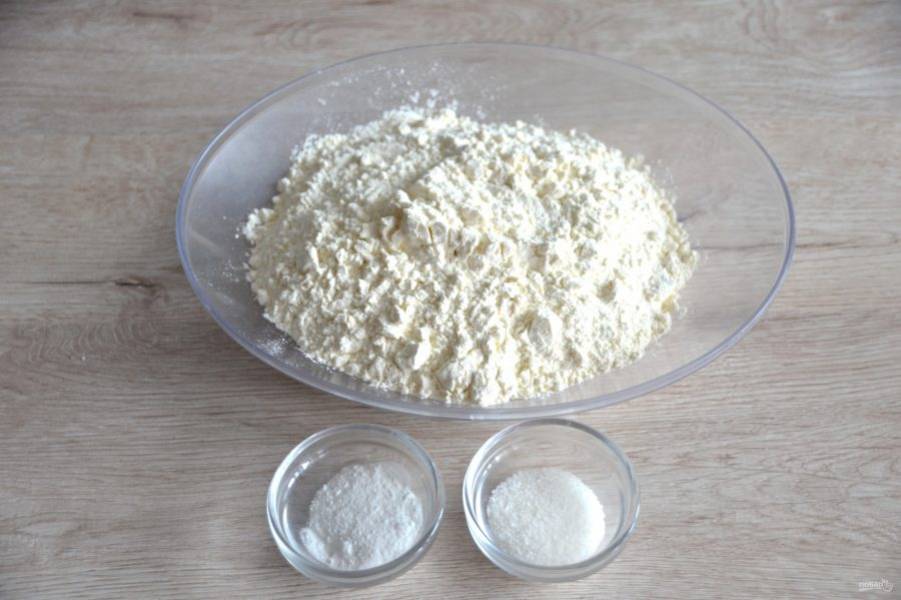 Смешайте муку, разрыхлитель для теста и ванильный сахар.