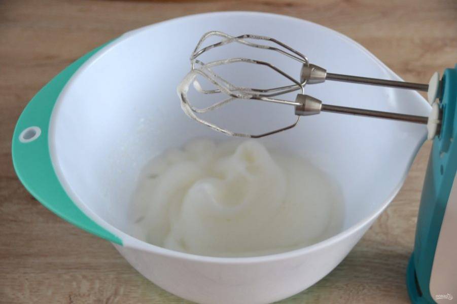 Взбивайте белки до стойких пиков.