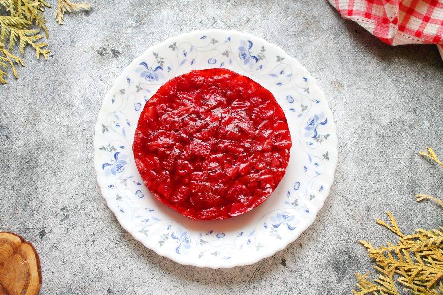 Переложите компоте в силиконовую форму диаметром 18-20 сантиметров и остудите. Поставьте форму в морозилку до полного застывания на 3-4 часа. После этого извлеките компоте из формы и используйте по назначению.