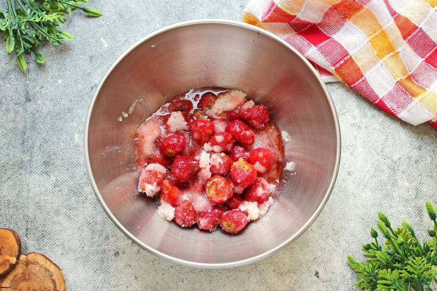 Оставьте миску при комнатной температуре в течение 3 часов, чтобы ягоды дали сок.