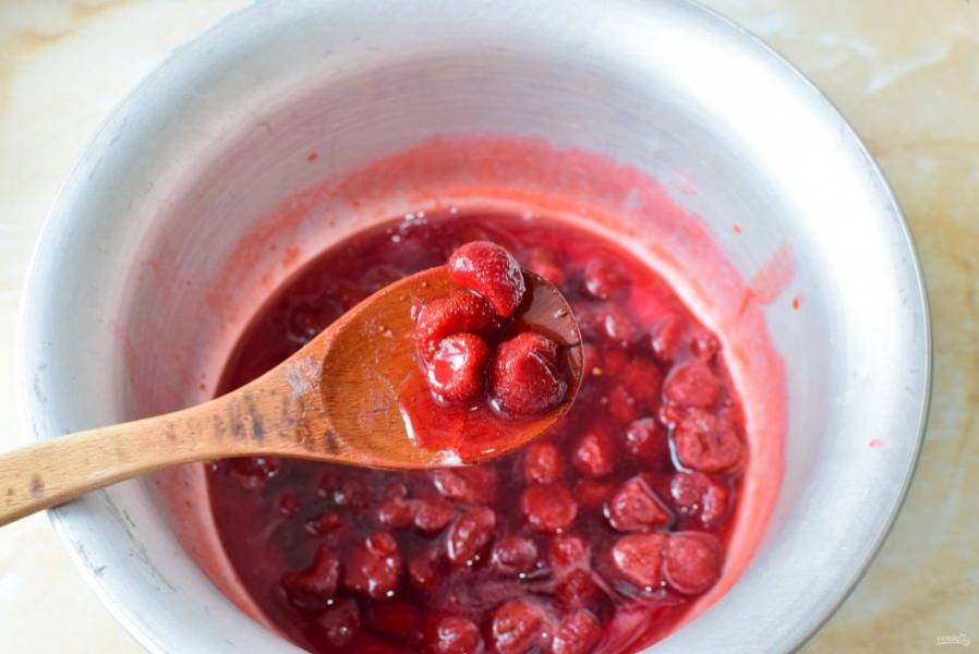Доведите ягоды до кипения и проварите 2-3 минуты. Затем снимите с огня и остудите.