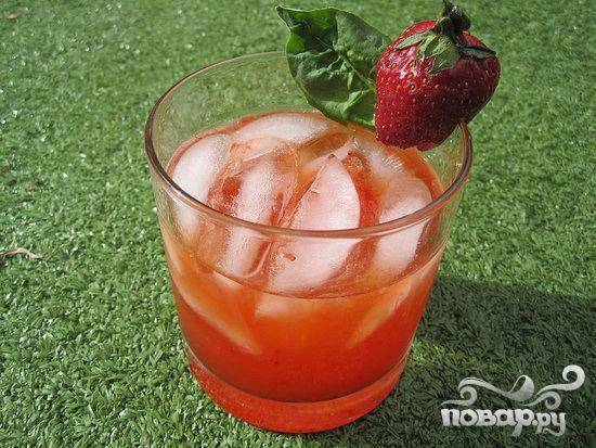 Рецепт приготовления легкого алкогольного напитка с натуральной клубникой, базиликом и джином.