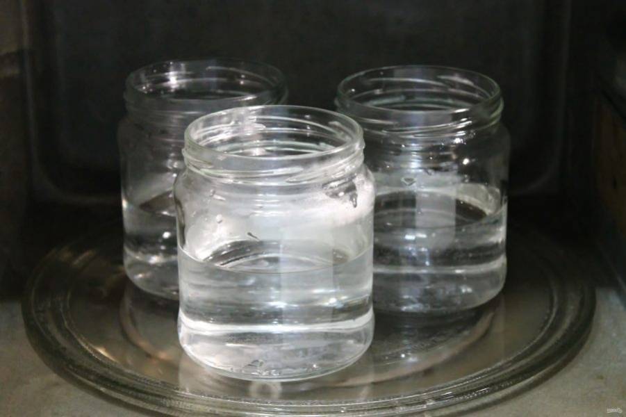 Банки тщательно вымойте с пищевой содой в горячей воде, сполосните. Стерилизуйте банки любым удобным способом, переверните на чистое полотенце и дайте обсохнуть. Железные крышки прокипятите на среднем огне в течение 5 минут.
