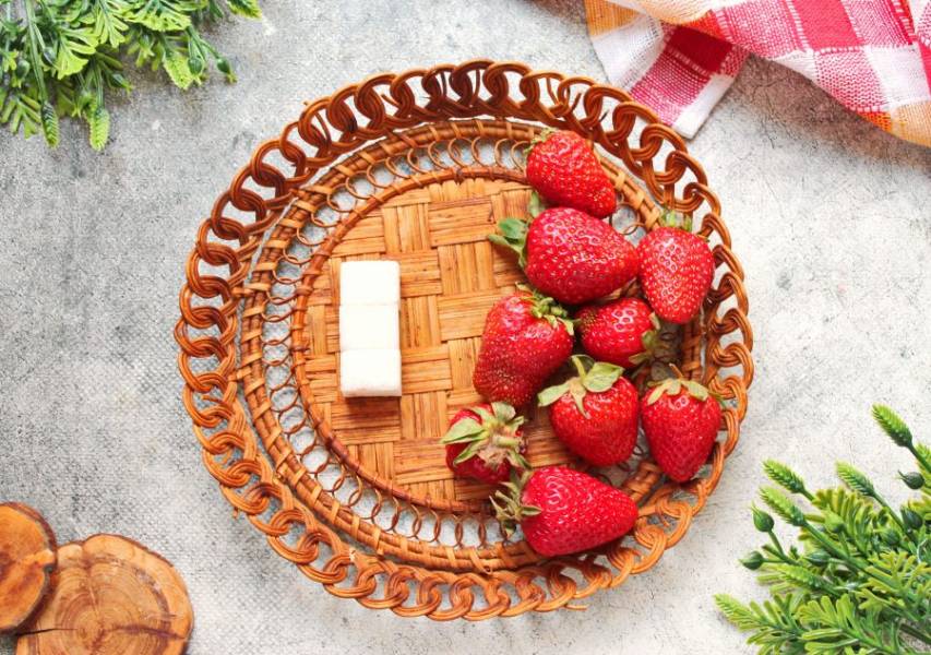 Подготовьте все необходимые ингредиенты для приготовления клубники протертой в сиропе.