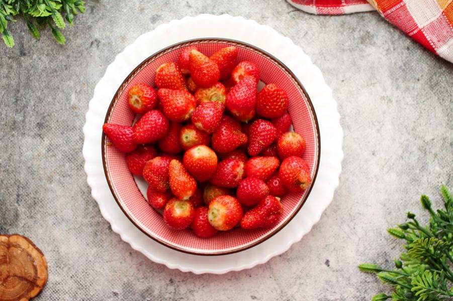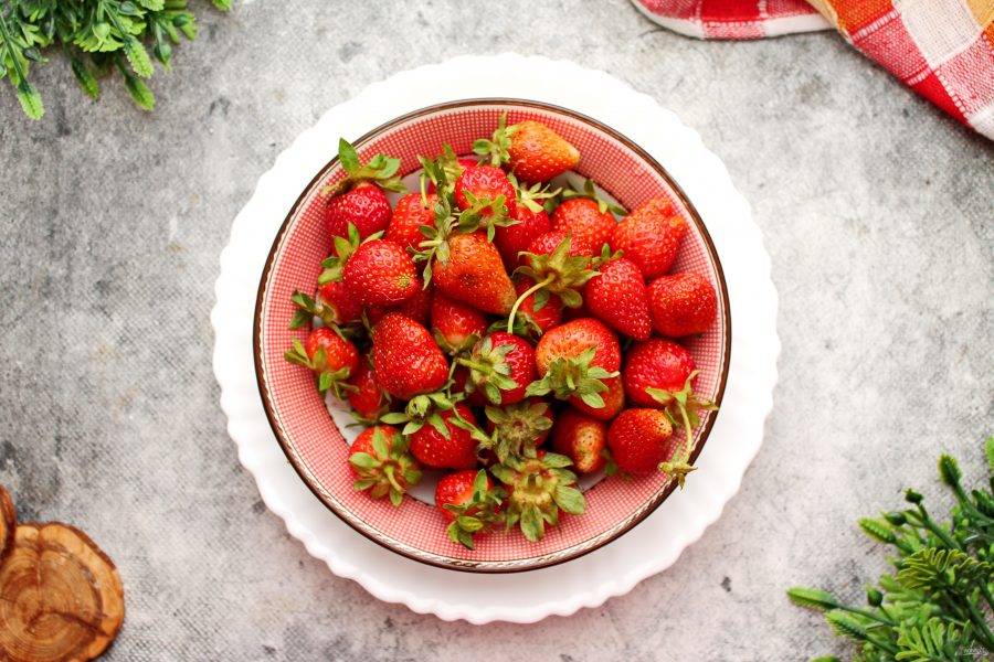 Ягоды переберите, удалите все мятые и порченые ягоды, так как тепловой обработки почти не будет. Клубнику вымойте, разложите на бумажном полотенце и дайте полностью обсохнуть.