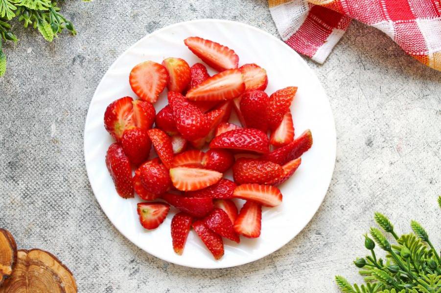 Разрежьте ягоды на части.
