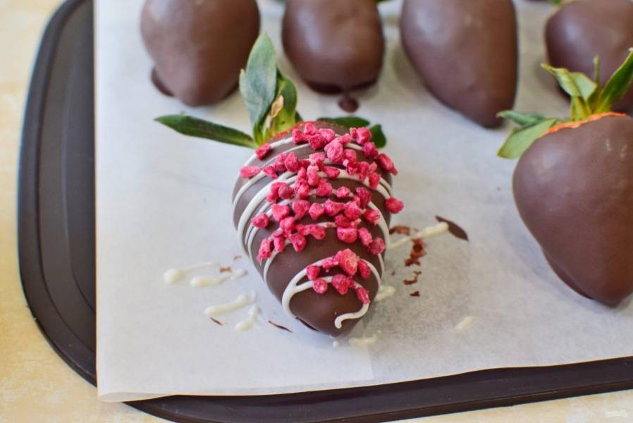 Готовые ягоды поставьте в холодильник, чтобы шоколад застыл. Затем можно подавать к столу.