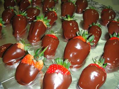 Клубнику обмакивать в шоколад и выложить на фольгу.