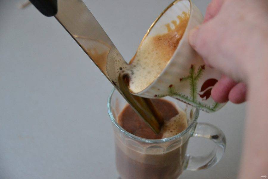 С помощью ножа аккуратно влейте кофе.
