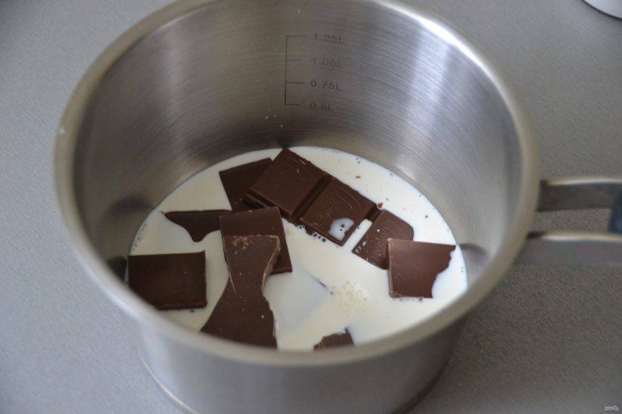 Влейте в сотейник с толстым дном питьевые сливки, положите шоколад и топите при постоянном помешивании на медленном огне или на "водяной бане".