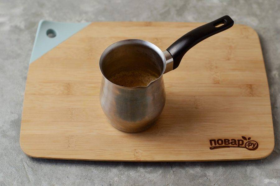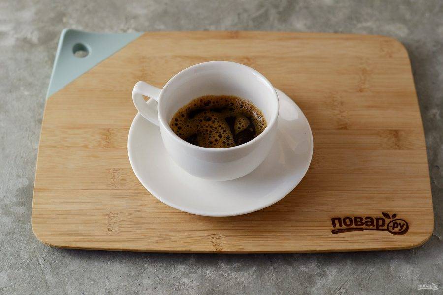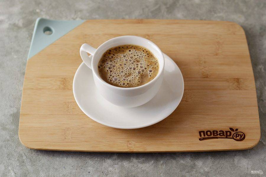Заварите крепкий эспрессо любым удобным для вас способом. Я варю в турке. В конце добавьте щепотку корицы и перемешайте.