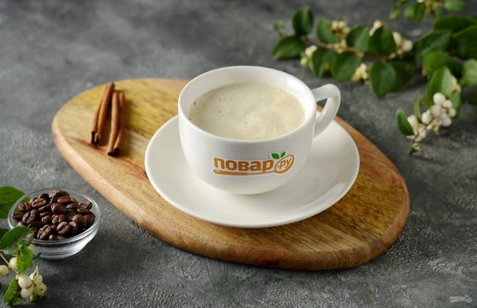 Молоко доведите почти до кипения, перелейте в кувшин или молочник. Немного взбейте молоко по желанию.