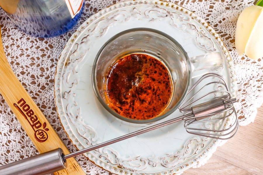 Влейте 0,5 ч.л. кипятка и взбейте содержимое чашки в пышную пену. Можно сделать это венчиком, можно вилкой или ложкой.