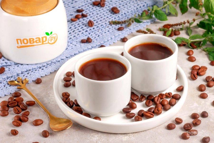 Разлейте кофе в порционные чашки или стаканы и подайте к столу горячим.