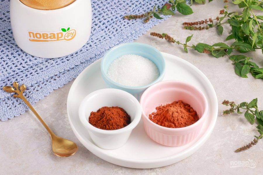 Подготовьте указанные ингредиенты. Сорта кофе и какао можете выбрать по своему вкусу.