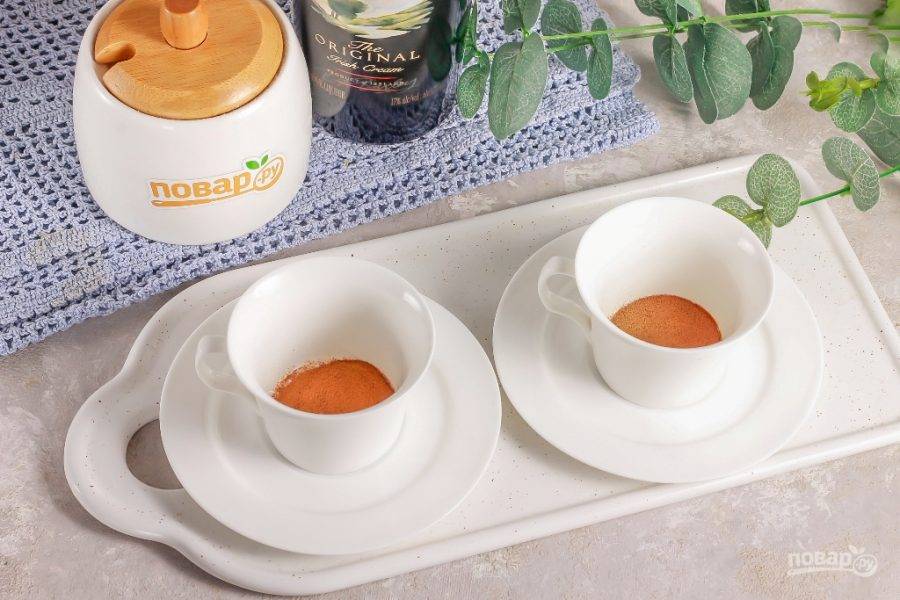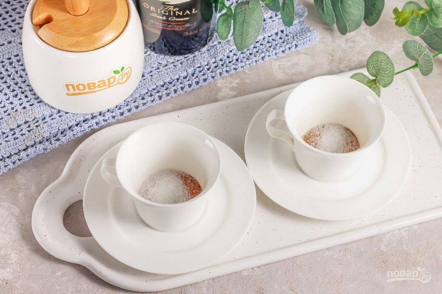 Добавьте в каждую чашку по 1/2 ч.л. сахарного песка. Тем, кто не любит слишком сладкий напиток, можно посоветовать исключить сахар из списка ингредиентов, так как ликер сам по себе сладкий и вкусный.
