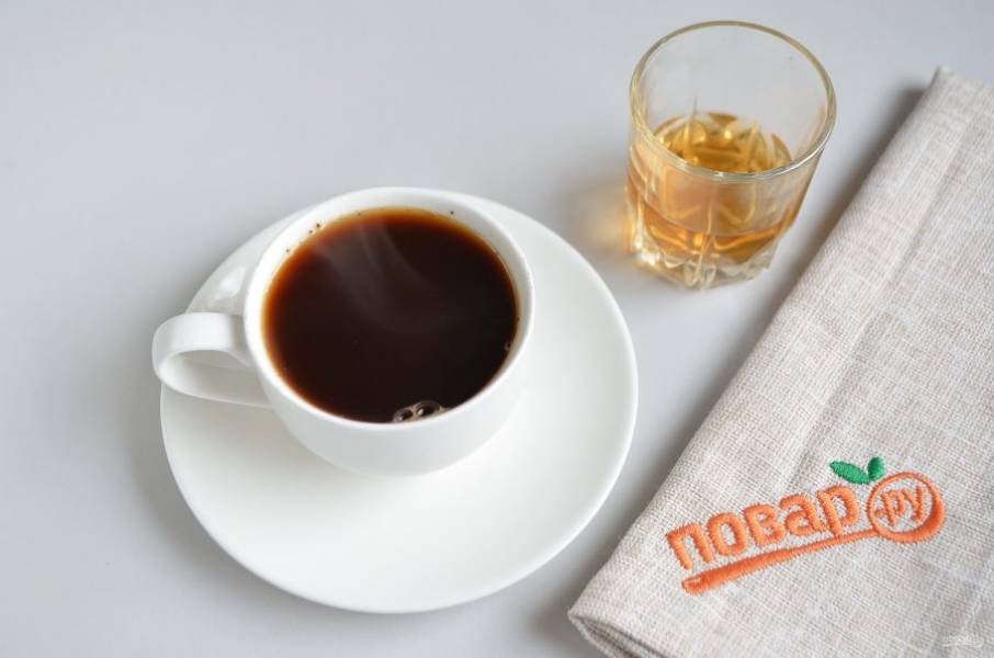 4. Перелейте кофе в чашку. Добавьте пару столовых ложек коньяка и наслаждайтесь! Хороших выходных!