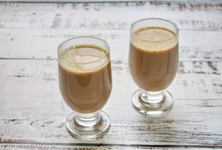 Разлейте по чашкам крепкое кофе, влейте молоко с марципаном.
