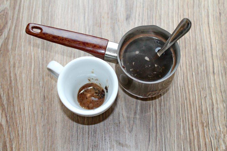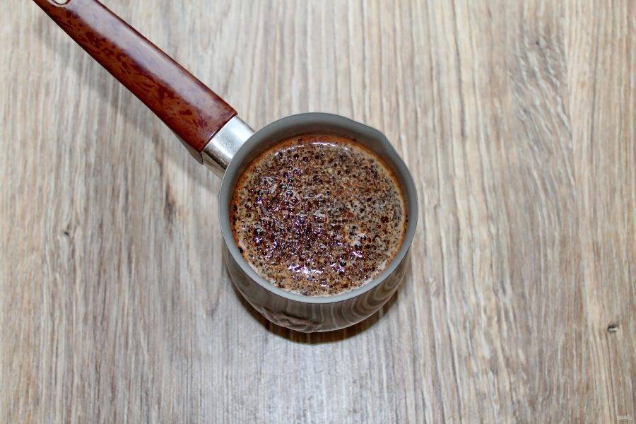 Поставьте на медленный огонь турку и варите до поднятия пенки. Снимите с огня и переложите пенку в чашку. Верните турку на огонь, снова дождитесь пенку и снимите с огня. Переложите пенку в чашку.