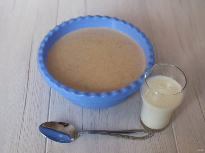 Добавьте в молоко йогурт и тщательно размешайте. Важно, чтобы йогурт был комнатной температуры.