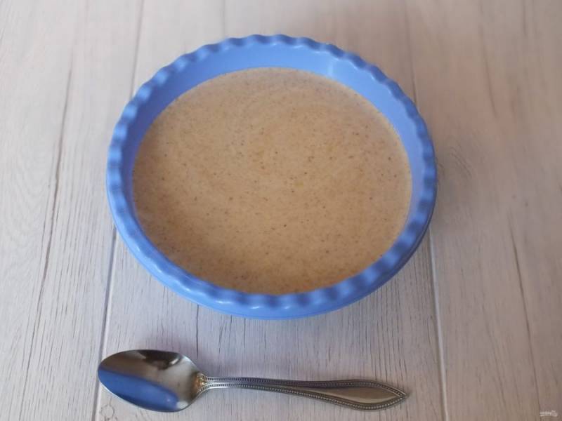 Налейте молоко в чашу. Добавьте к нему горячее кофейное молоко. Размешайте. Если молоко не достаточно теплое, подогрейте. Температура молока должна быть приближенная к 30 градусам.
